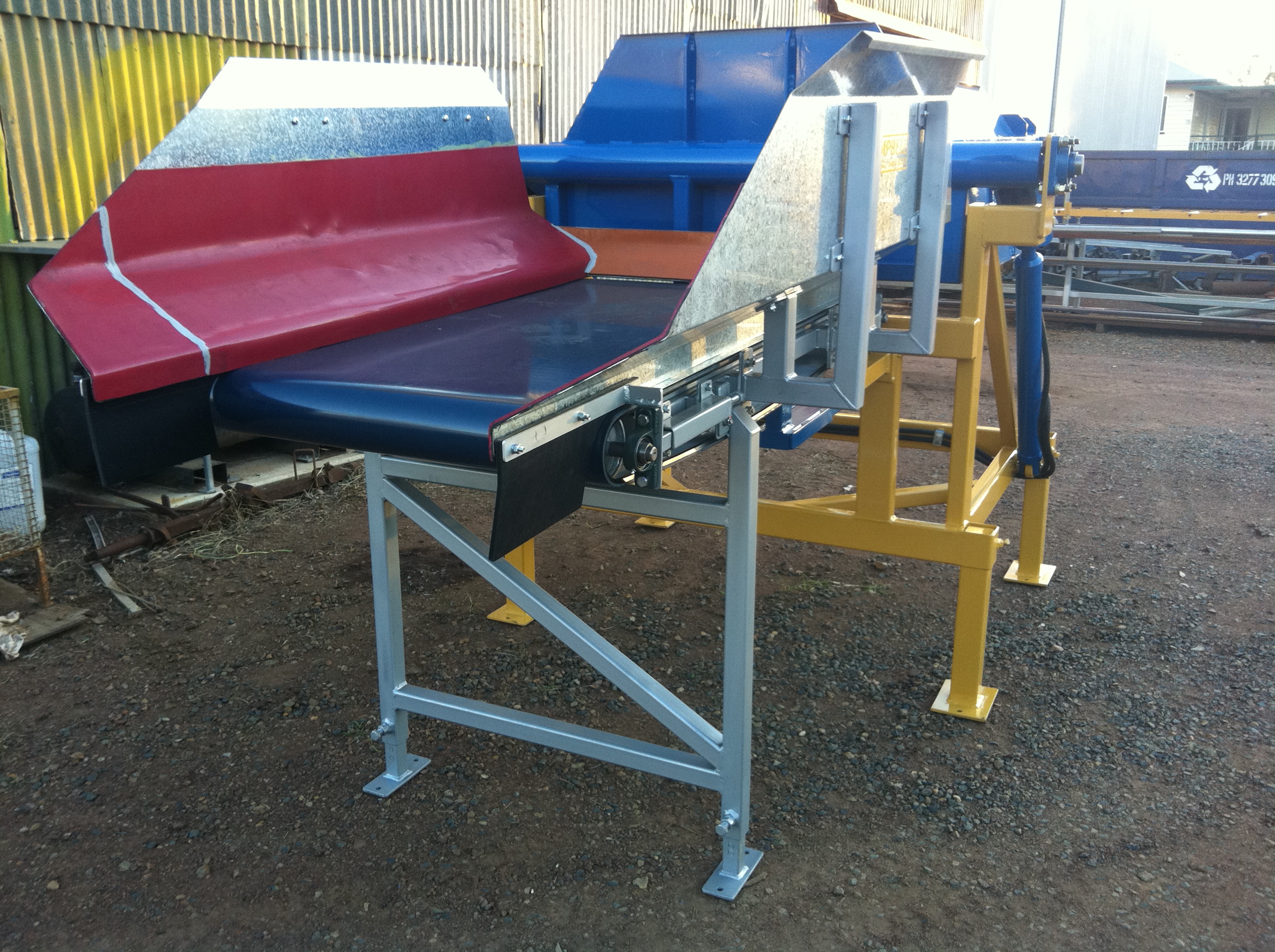 - Hydraulic controls for boom adjustment and belt speed.